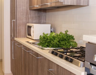 La zona pranzo è dotata di tutti i confort : forno , bollitore, tostapane.