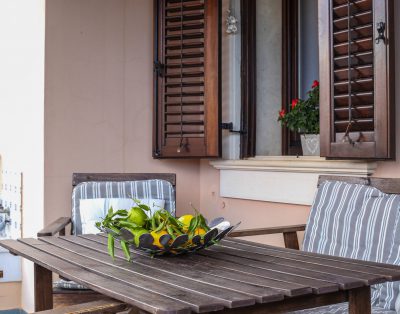 OUTSIDE : Dalla luminosa zona living-cucina si accede all’incantevole terrazza esterna- attrezzata con arredi in legno e poltrone per il vostro relax.